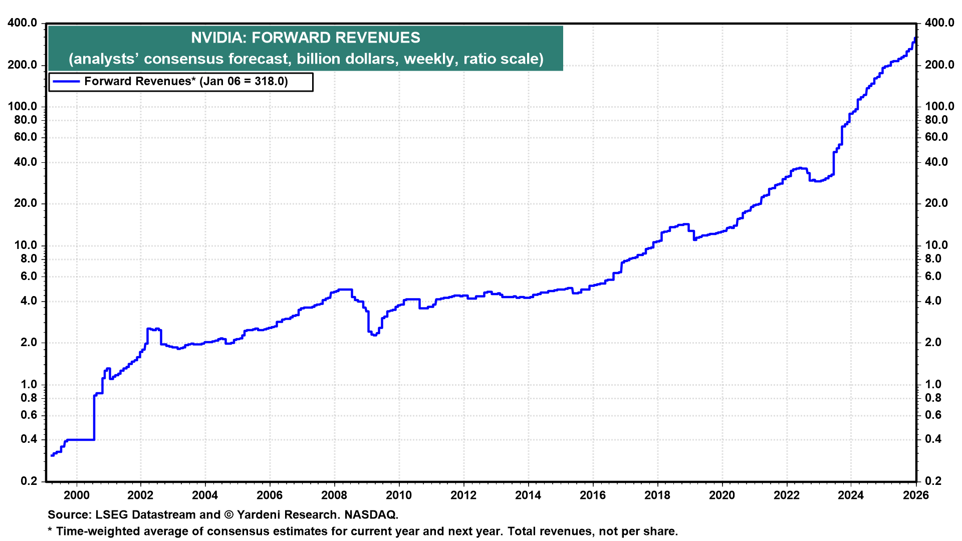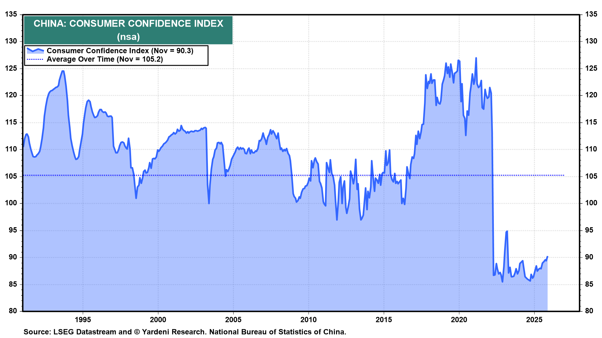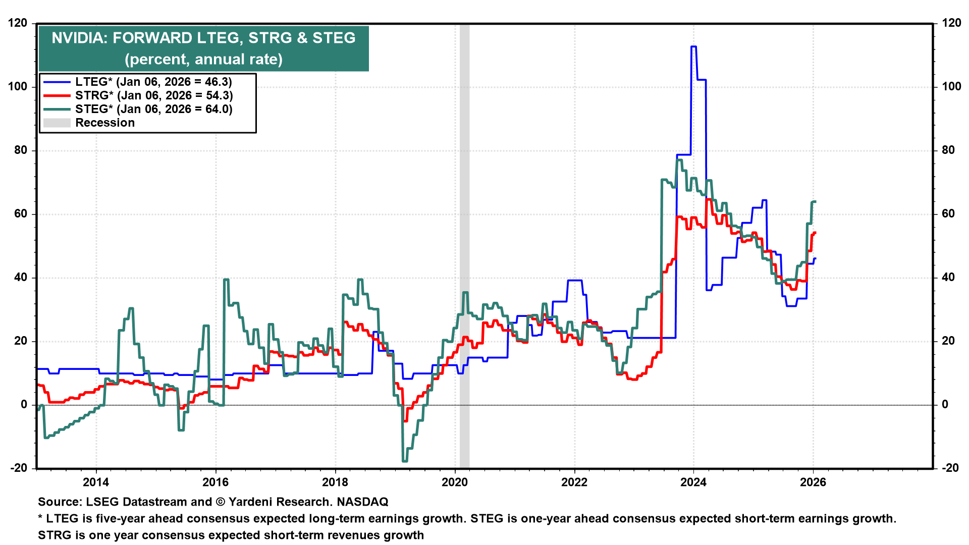 Executive Summary: President Trump’s Venezuelan gambit may give China cover to tighten the noose around Taiwan. That could slam global markets and supply chains, William writes, as well as unnerve global AI investors envisioning Taiwan Semiconductor winding up in China’s control. … Also: In the EV market race, BYD is running circles around Tesla. But whether that will remain the case is questionable. … And: In Europe, gradual fiscal stimulus is keeping the economic backdrop stable, Melissa reports, which is keeping stock markets moving higher. Forward P/Es have been capped around 15 since March. … Also: Joe says the absence of Q4 earnings warnings by managements of S&P 500 companies could set the stage for yet another epic earnings quarter.